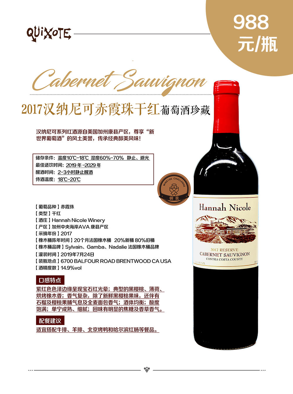 2017汉纳尼可赤霞珠珍藏