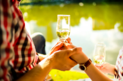 我想这就是幸福。低头浅酌,合目回味,便可见树立山坡的葡萄藤,缀挂丛中的葡萄串,摇曳微风里的绿掌叶片……是谁挑动着心弦?把酒香悄悄漫入我鼻间,让酒色鲜活了我单调的视线,将回味永驻我心间……