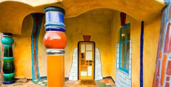 于是,他找到了当时颇具争议的奥地利建筑大师,也是一位行为艺术的爱好者(赤身卧睡于河边,是为了离大自然更近)——百水大师。